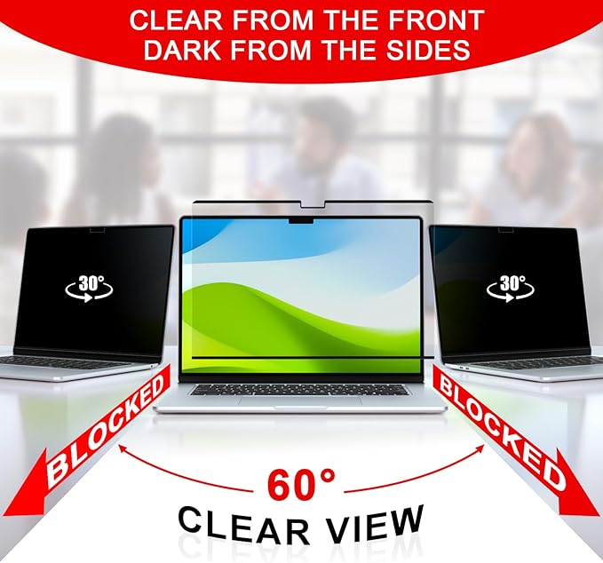 - 4.【Anti-Glare & Scratch Resistant】- MacBook Pro 16 inch Privacy Screen, adopts advanced multi-layered film filter blacks out your screen when viewing from the side, while maintaining a crystal clear screen straight-on. It also protects your eyes from harmful glare, UV, and blue light, keeping prying eyes away from password and document info. This Magnetic privacy screen MacBook Pro 16 inch also helps keep your screen safe from dust and scratches from daily use.