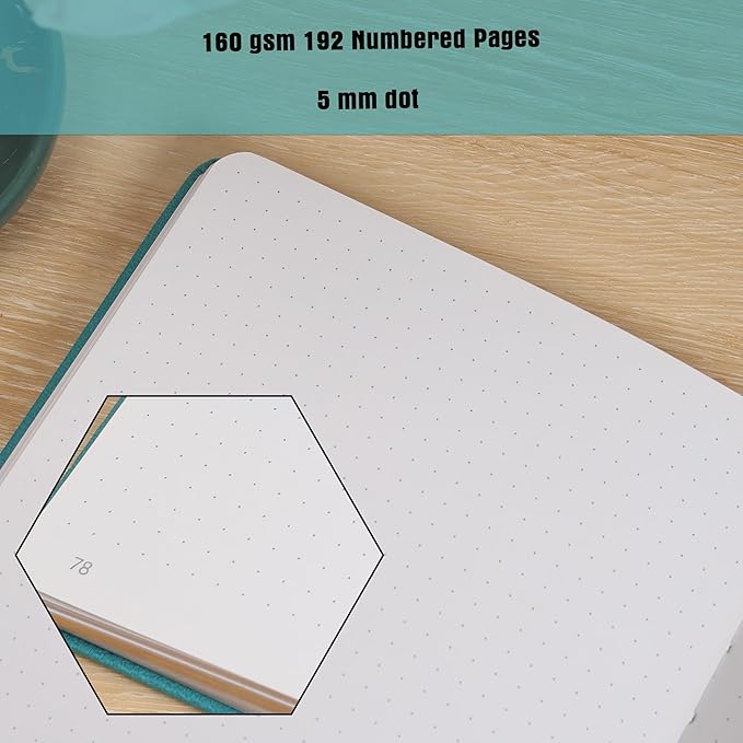 - 160 GSM 192 Premium Pages: 160 GSM 192 diary with page numbering, 5mm dot spacing, grid pages are made of high-quality thickened paper which is thicker than ordinary paper on the market to reduce ink leakage, erasure wear and shading problems. The Journal elevates the quality and aesthetic of journals and is an indispensable tool for professionals.