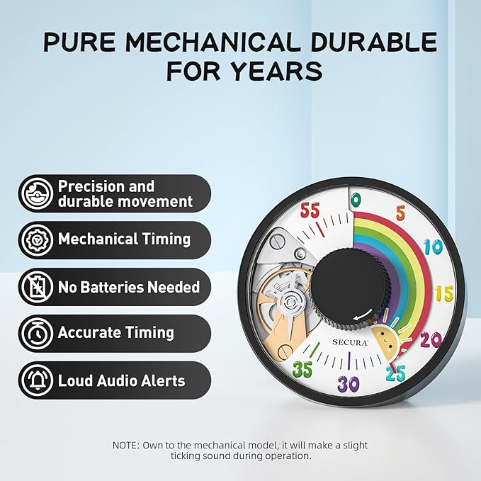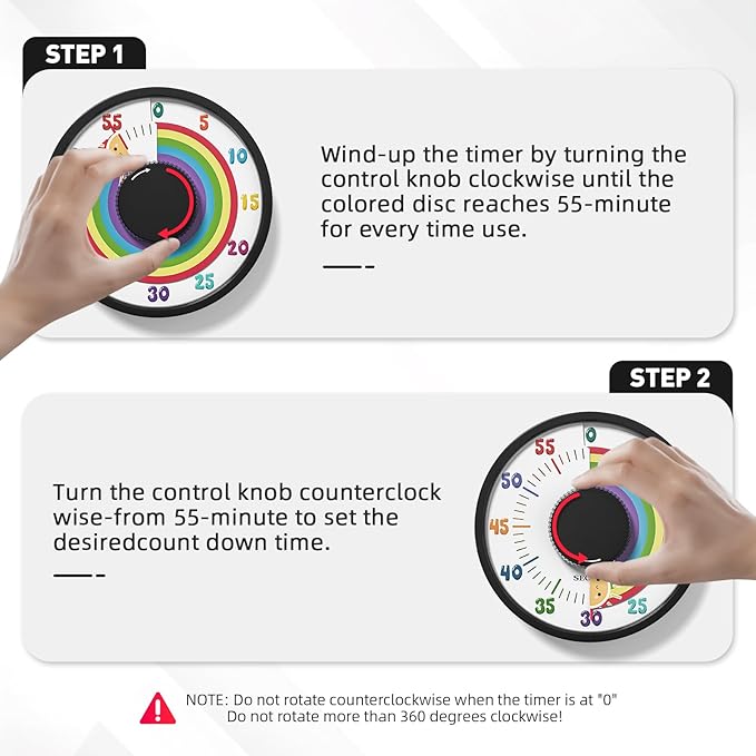 - NO BATTERIES REQUIRED - Completely mechanical countdown timer for school classroom, office working, kitchen cooking, gym body building, and more! High accurate mechanical timing. No batteries needed