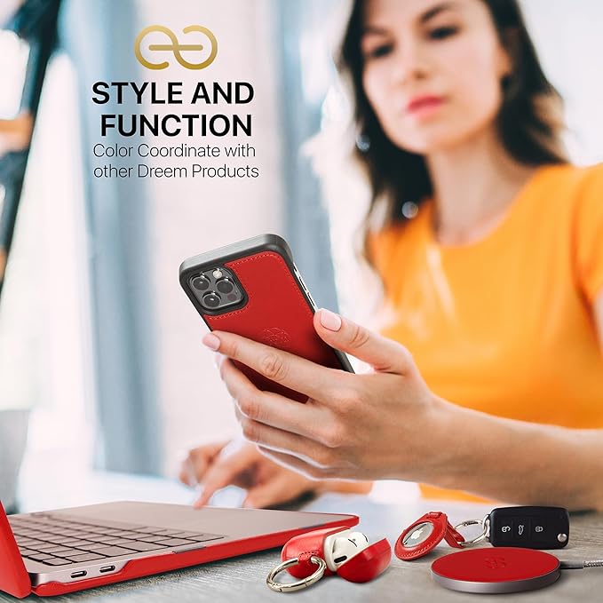 Dreem Om Case Cover with Keychain Clip Compatible with AirPods 4 for Apple AirPods 4th Generation, Vegan Leather AirPod Case for Men & Women, Luxury Earbuds Accessory for iPhone - Red