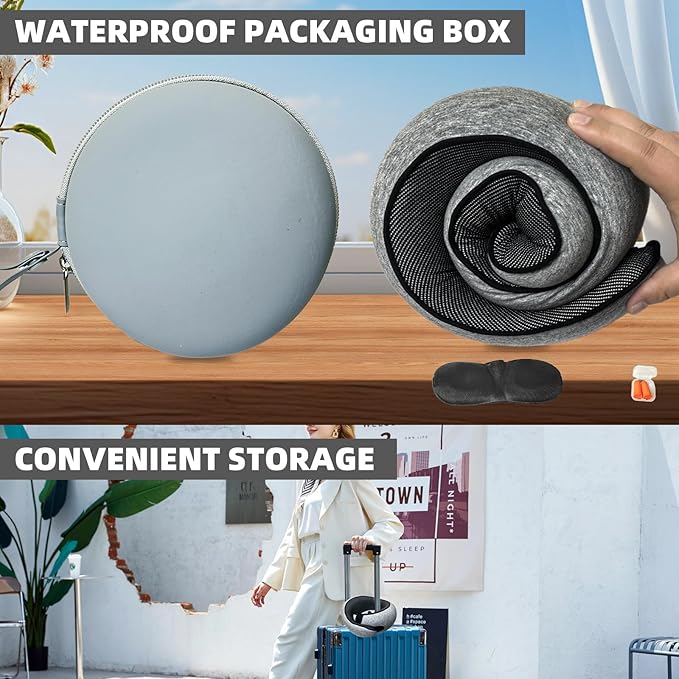 - 【NOTE】 Our storage box is waterproof to prevent the travel pillow from getting soaked during travel. After opening, let the travel pillow sit for a while to help the memory foam fully rebound. Any initial odor is normal; just place the pillow in a well-ventilated, sunny area to dry. If there is any problem with our products, please feel free to contact us, and we will solve the problem as soon as possible until you are satisfied.