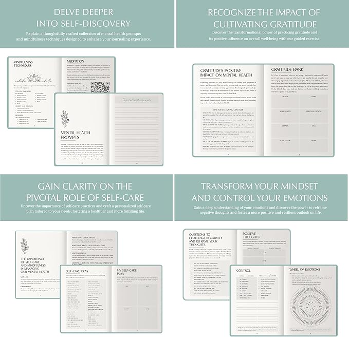 - π MENTAL HEALTH JOURNAL: This guided journal covers a structured 6-month period, offering tools and exercises tailored for your mental health exploration. Find peace, reflect on your feelings, and manage symptoms through self-care and mindfulness. Plus, enjoy a free guided audio meditation by scanning the included QR code in this wellness journal.