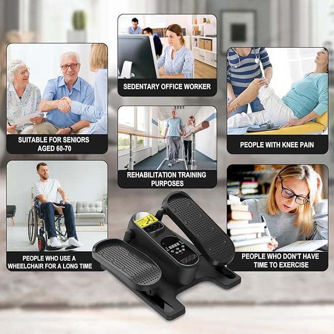 - 【Under desk elliptical】 Experience under desk elliptical workouts with built-in acupressure . Designed for seniors and post-surgery rehabilitation, this mini elliptical is perfect for sitting and watching TV or working.