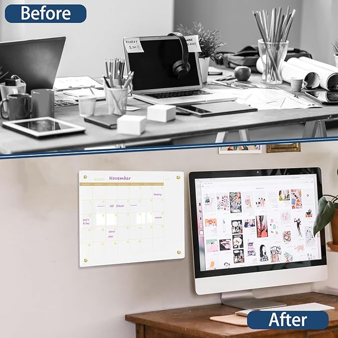 - Small Glass Dry Erase White Board: 11.8"x15.7" small size glass dry erase monthly calendar whiteboard. (Magnets and markers not included)