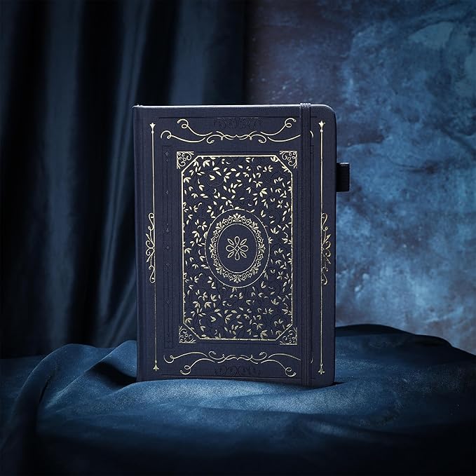 - Fabric Bullet Dot Journal: Unlike the texture of a leather journal, this is a fabric journal with a rustic fabric and foil stamped design that mirrors each other, fitting in with the journal choices of those with an eye for aesthetics. The journal comes with an expandable pocket, pen loop, 2 ribbons, and elastic band. making it a good fit for those who use this journal.