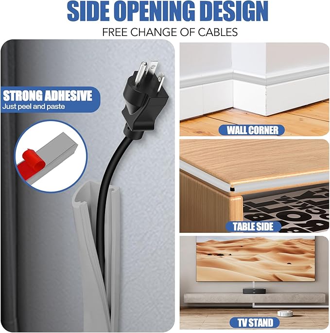 - 【Quick Tool-Free Installation】Extension cord covers adopts self-adhesive design, users only need to tear the tape on the back to fix it on the floor or wall easily. If you need a shorter length of cord hider, you can use scissors to cut it easily. Please check the size of your cables or cords first before placing an order
