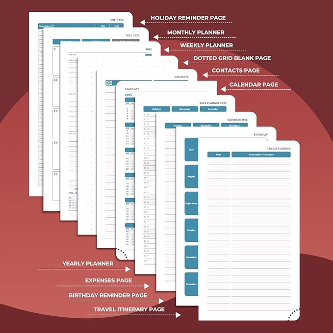 - Universal Design Planner: Suitable for a variety of people and scenarios. Professionals manage project progress, meeting arrangements and goals; student planner 2025-2026 courses, exams and extracurricular activities; home users arrange travel, activitie