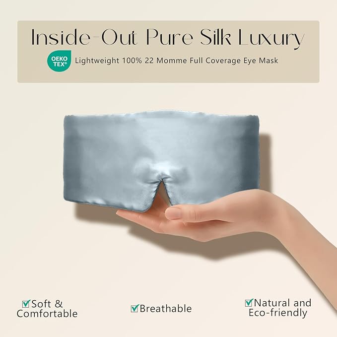 - ✅100% 22 Momme Grade 6A Luxury Construction: Crafted entirely from the highest-grade mulberry silk - including a silk-filled interior - this premium sleep mask delivers superior thickness, gloss, and durability. The full silk encasement ensures unmatched breathability, cloud-like comfort.
