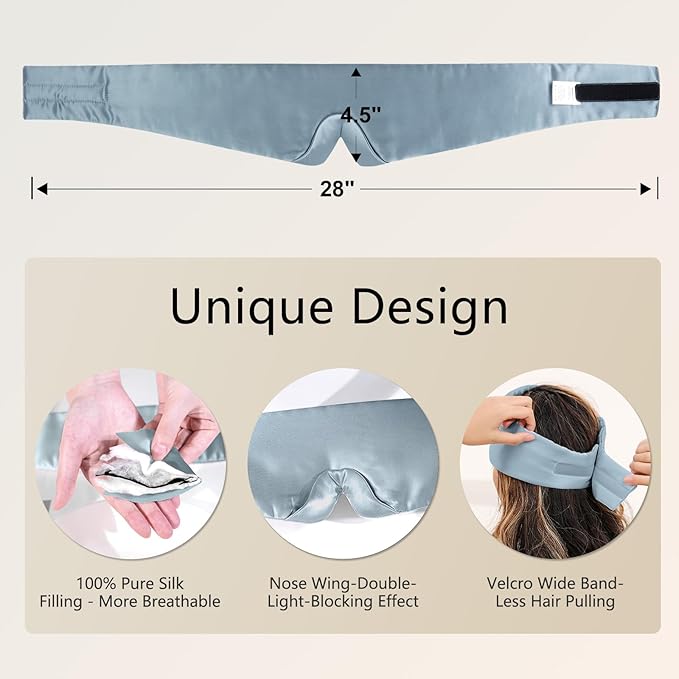 ZIMASILK 100% 22 Momme Mulberry Silk Sleep Mask - Full Silk Filled, Ultra-Soft & Breathable, Face-Hugging Blackout Eye Cover for Sleeping (Bluestone)
