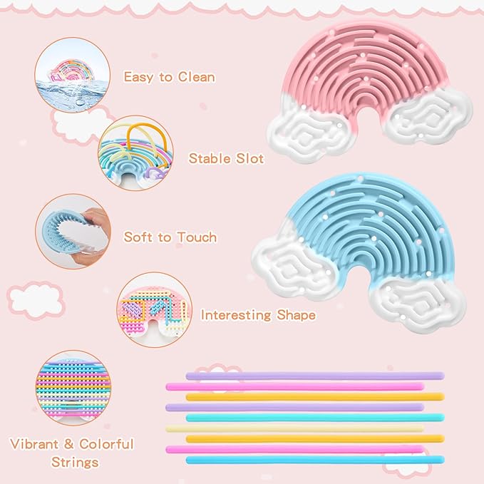 2 Pack Sensory Activity Board with 24 Random-Color Strings Fidget Toys for Kids, Sensory Toys for Kids with Autism, ADHD, Stress, Calming, Double-Sided Silicone Toys, Birthday