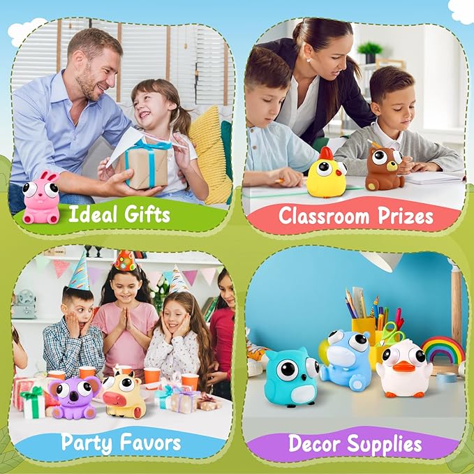 - 【Ideal Toys for Children】The animal stress relief toys are great for easter basket stuffers,party favors,Christmas gifts,birthday gifts,goodie bag stuffers,classroom rewards and prizes for students,gifts for teens,Valentines Day gifts,carnival prizes and stocking stuffers