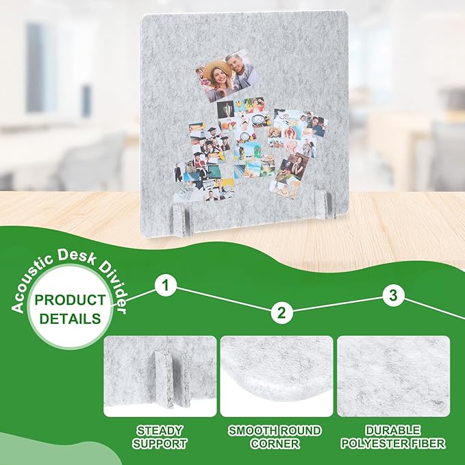 - Advantage: Excellent Material: Made of polyester fiber, these acoustic desk dividers are durable and reliable, and they are not easy to fade, break, or deform. It can reduce noise, and protect your privacy, effectively increasing your productivity and concentration; Portable Size: The portable and lightweight desk divider can be easily moved, and stored anywhere when not applied, saving you space. Stand Firmly: The support foot can ensure that the desk divider stands steadily without falling.