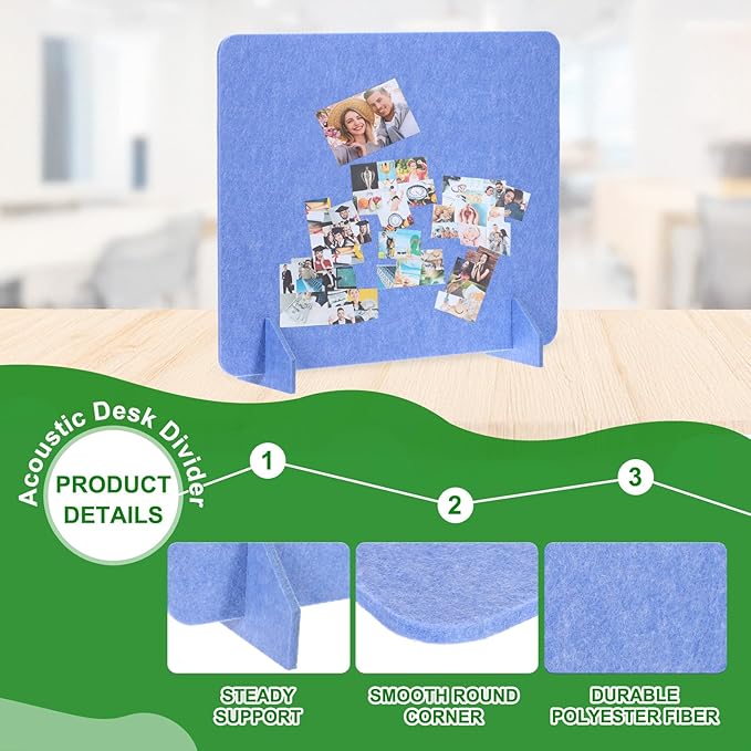 - Specification: Material: Polyester Fiber; Size: 600 x 600 mm/23.6 x 23.6 Inch(L*W); Thickness: 9mm/0.4 Inch; Color: Blue; Packing List: 2 Sets x Desk Dividers(Each Set includes 1 Pcs x Divider and 2 Pcs x support feet)