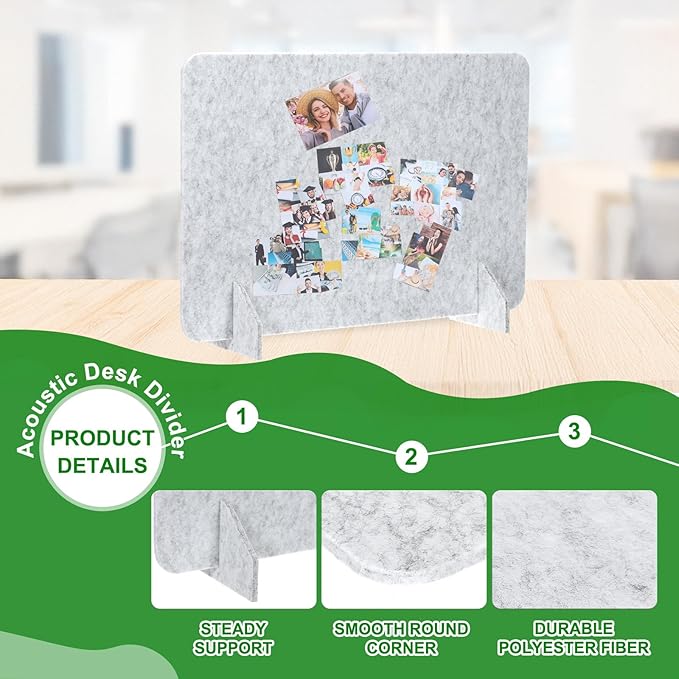 - Advantage: Excellent Material: Made of polyester fiber, these acoustic desk dividers are durable and reliable, and they are not easy to fade, break, or deform. It can reduce noise, and protect your privacy, effectively increasing your productivity and concentration; Portable Size: The portable and lightweight desk divider can be easily moved, and stored anywhere when not applied, saving you space. Stand Firmly: The support foot can ensure that the desk divider stands steadily without falling.