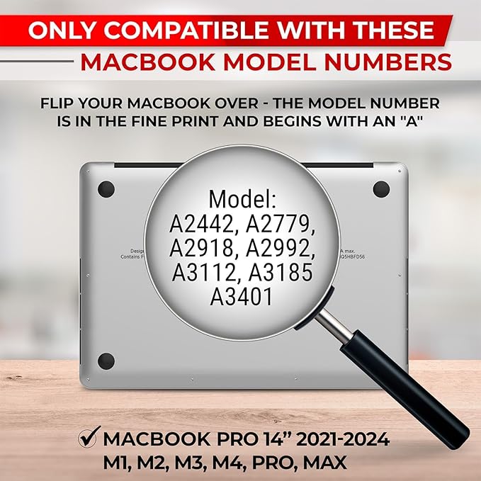 - Compatible Phone Models : for MacBook Pro 14 Inch Year (2021, 2022*, 2023, 2024, M1, M2, M3, M4, Pro, Max) (Model: A2442, A2779, A2918, A2992, A3112, A3185, A3401) for MacBook Pro 14 Inch Year (2021, 2022*, 2023, 2024, M1, M2, M3, M4, Pro, Max) (Model: A2442, A2779, A… See more