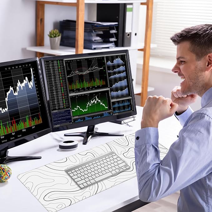 White Minimalist Topographic Map Mouse Pad - Contour Extended Large Stitch Edge Mousepad Black & White Non-Slip Gaming Desk Mat 31.5x11.8inch