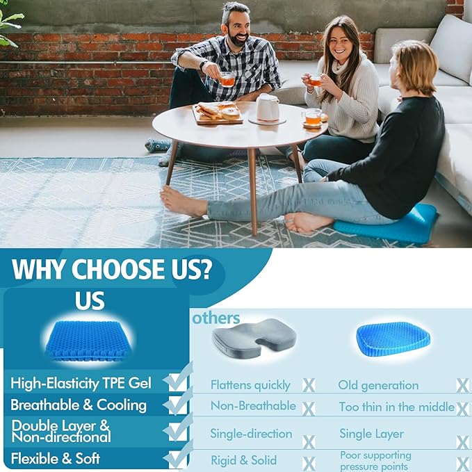 - 【Medical grade pressure-relieving gel layer, no fatigue from sitting for a long time】. Adopting high-density slow-release gel material, intelligently disperses the pressure points of the buttocks, fits the human body curve, effectively relieves lower back, sciatic nerve, coccyx pain, tailbone, hip and hip pain caused by sitting for a long time, especially suitable for office workers, drivers, gaming players and other long-time sedentary people.