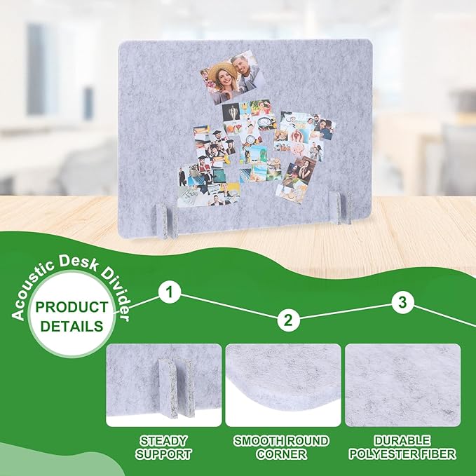 - Specification: Material: Polyester Fiber; Size: 600 x 400 mm/23.6 x 15.7 Inch(L*W); Thickness: 9mm/0.4 Inch; Color: Light Grey; Packing List: 2 Sets x Desk Dividers(Each Set includes 1 Pcs x Divider and 4 Pcs x support feet)