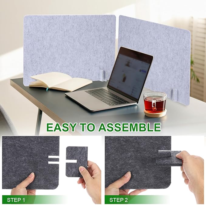 - Advantage: Excellent Material: Made of polyester fiber, these acoustic desk dividers are durable and reliable, and they are not easy to fade, break, or deform. It can reduce noise, and protect your privacy, effectively increasing your productivity and concentration; Portable Size: The portable and lightweight desk divider can be easily moved, and stored anywhere when not applied, saving you space. Stand Firmly: The support foot can ensure that the desk divider stands steadily without falling.