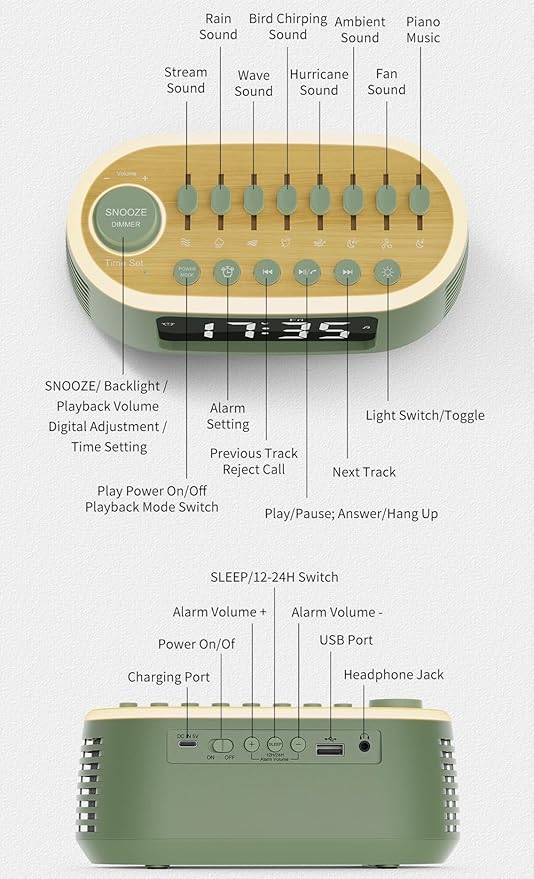 - 【Natural Sound Combinations】The sound incorporates elements including Stream, Rain, Wave, Bird, Hurricane, Ambient, Fan, and Piano. Due to its Slide Knob Tuning design, by simply pushing the physical slider, the 8 nature sounds can generate 200 music - mix sounds. You have the freedom to combine your favorite white noise as you like.