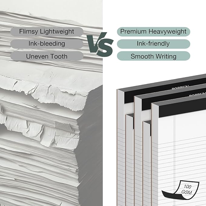 - Heavy-duty 900 GSM Backboard: Built with an ultra-rigid backboard, this notepad stays firmly planted on any surface. The rugged construction prevents slips and bends during vigorous writing or sketching, while remaining slim enough for daily carry in briefcases or backpacks.