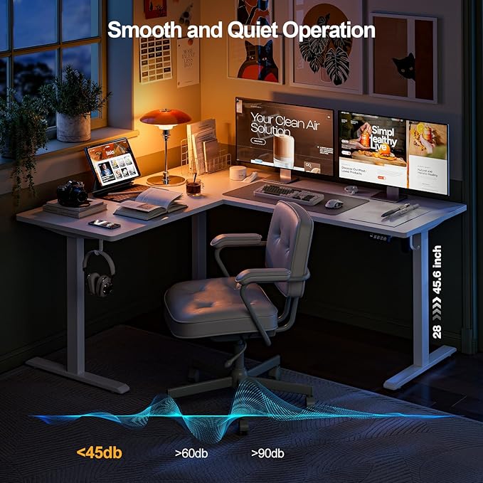 - 【2-Preset Electric Height Adjustment & Smart Controls】Elevate productivity with smooth, silent height adjustments (28"–45.6"/70–116cm range). The intuitive 4-button controller includes 2 memory presets for one-touch switching between sitting and standing positions. Ideal for posture variety, reducing fatigue, and enhancing focus during long work sessions.