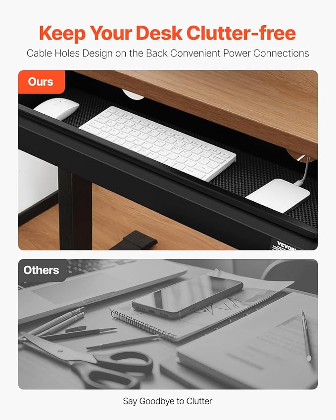 - ✅[Efficient Organization&Minimal Assembly]: Say goodbye to cluttered desks! Keep your workspace tidy by storing your keyboard, mouse, and other devices in this large under table drawer to boost productivity. The under desk pull-out drawer features a cable hole and comes with 2 cable organizers for easy storage of different devices. Assembly is a breeze with our instruction guide—one person can do it! (Tip: flip the desk over to secure the drawer for less effort.)