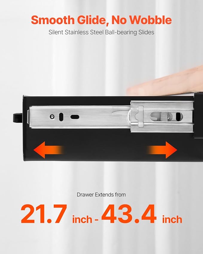 - ✅[Smooth & Silent Sliding]: Pull the U-shaped handle and enjoy the smooth glide of this under table drawer. The under counter drawer equipped with two high-quality stainless steel ball-bearing tracks, it opens quietly and effortlessly, without any jerking or annoying noise. Fully extendable, this slide out standing desk storage attachment makes accessing your items a breeze.