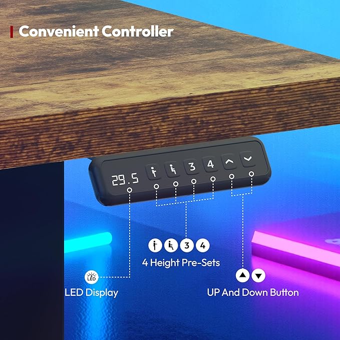 - 2. Smooth Electric Height Adjustment Power through your day with a quiet, robust lift system that transitions seamlessly between 28.3" to 45.9" (sit to stand). Preset up to four programmable heights via the intuitive control panel, adapting effortlessly to shared work spaces or individual ergonomic needs. Supports up to 220 lbs.