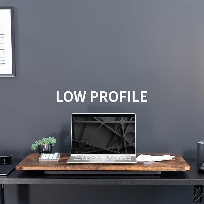 VIVO Ultra-Slim 32 Inch Single Top Height Adjustable Standing Desk Riser, Compact Sit Stand Desktop Converter for Monitor or Laptop, Vintage Brown, DESK-V032JN