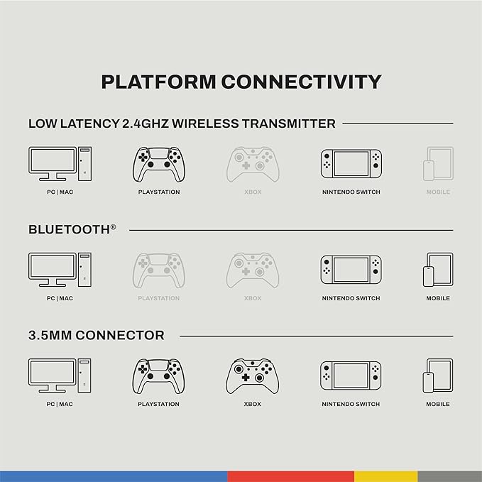 - MULTI-PLATFORM COMPATIBILITY. Connects to Nintendo Switch, PC and Mobile via Bluetooth. Or, wirelessly connect to PlayStation, Nintendo Switch and PC via the USB-A Ultra-Low Latency Wireless Transmitter. Hear every sound with no delay on 25ms fast wireless audio transmission.