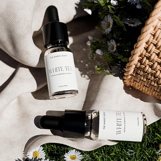 - PREMIUM BLEND OF NATURAL DIFFUSER OIL SCENTS - Expertly made in Miami, USA, White Tea sparkles with the heady pleasure of festivities, as lily and vanilla bloom amid the crisp, sensual air of a hilltop tea estate. Deeper layers of sensuality swirl in amber, luminous musks, and cedarwood.