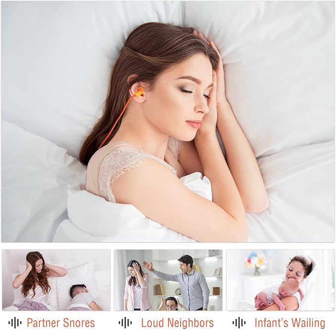Tondiamo 200 Pairs Ear Plugs Reusable Silicone Earplugs with Cord Sleeping Individually Wrapped Hearing Protection Noise Cancelling Earplugs for Work Construction Shooting Sports (Orange)