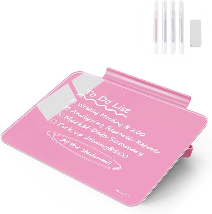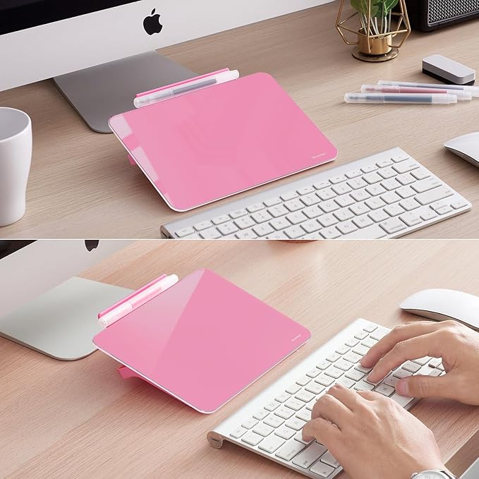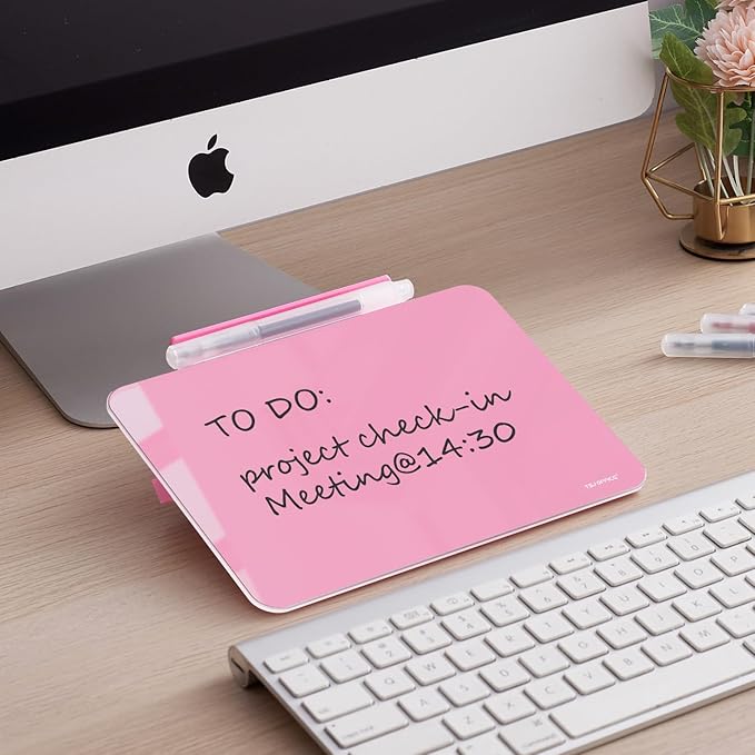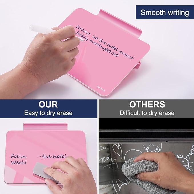 - SMOOTH WRITING & EASY TO WIPE: TSJ OFFICE mini desktop note taking pad comes with a smooth and durable temple glass dry erase writing surface. Our Boards Clean Easily With One Swipe and Resists Ghosting and Staining