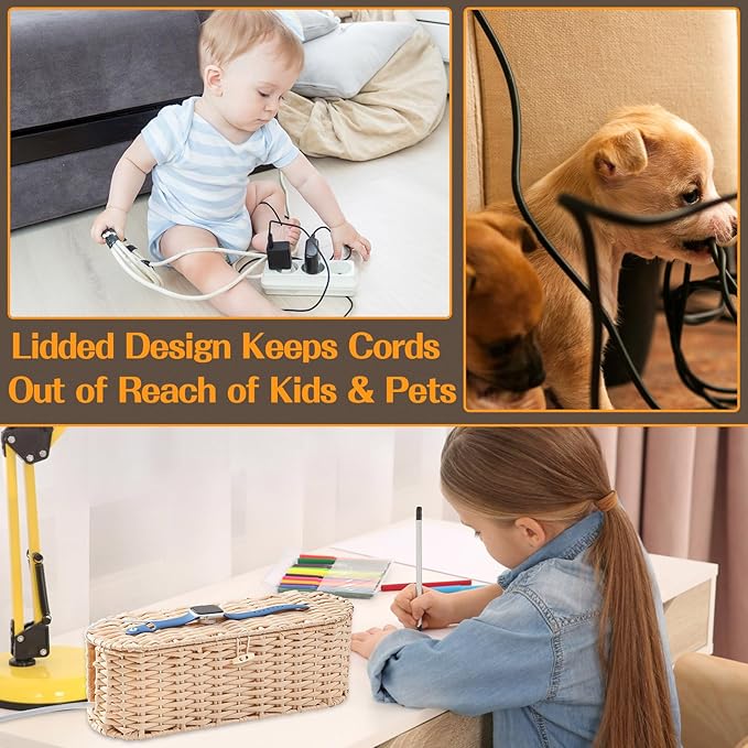 FairyHaus Cable Management Box 2Pack Cream, Handwoven Large and Small Cable Organizer Box Cover to Hide Cords and Power Strip, Imitation Wicker Cord Organizer Box Hider for Office Desk and Floor