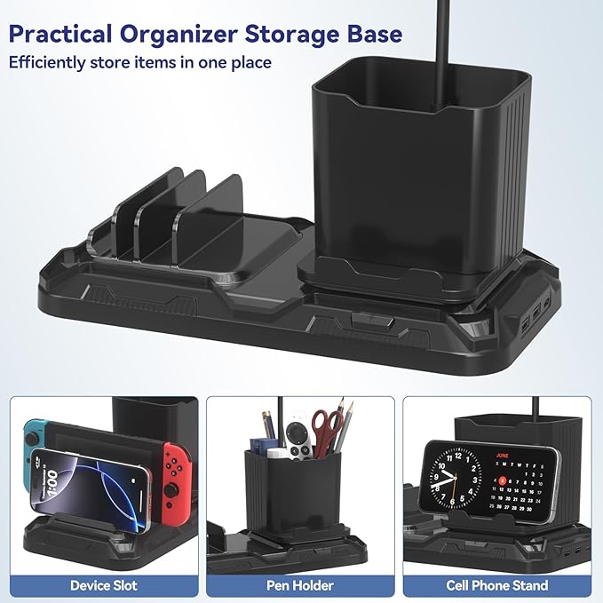 - 5 in 1 Desk Lamp Organizer - Combining desktop lamp, pen holder, cell phone holder, charging ports and device slot in one, it meets the multiple needs of lighting, storage, electronic use and charging, say goodbye to desktop clutter, keeping your desk surface neat and efficient, truly multi-purpose.