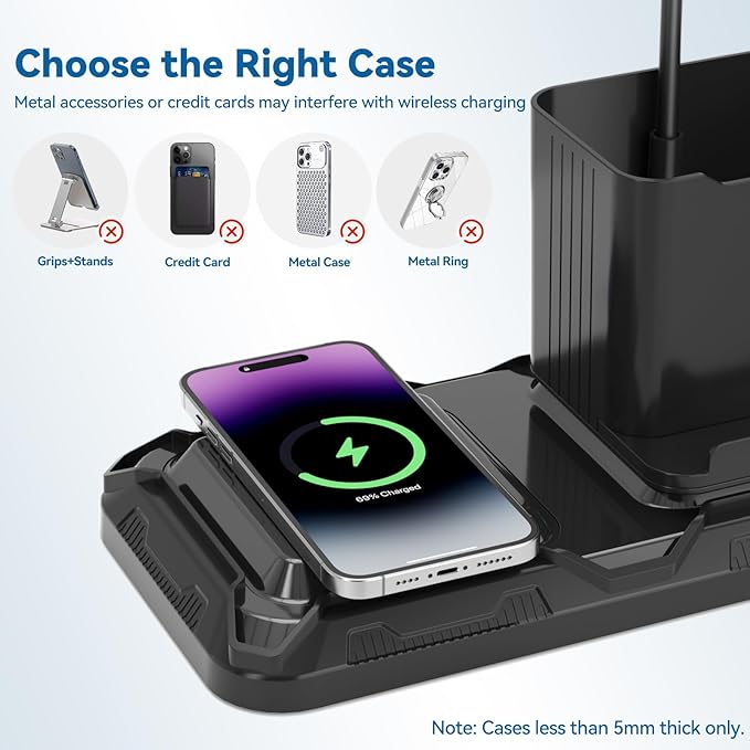 - 4-in-1 Design - This 4-in-1 multifunctional desk lamp with wireless charger combines lighting, charging, storage and stand, ideal for modern home and office desktop. Adopting simple and fashionable appearance design with high quality material, it is suitable for placing in study room, office, bedroom, dormitory and other scenes. Whether you are studying, working or relaxing, it can provide you with a convenient and comfortable using experience, making your desktop smarter and tidier.