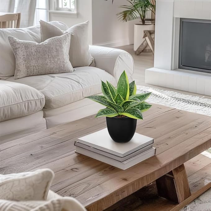 - Perfect Size: Faux snake plant in black pots total height: 9", plastic pot: 2.7 "W x 3.9 "H; Please read the dimensions carefully. Succulent agave plants artificial will easily catch you eyes, bring your home a vibrant sense of greenery