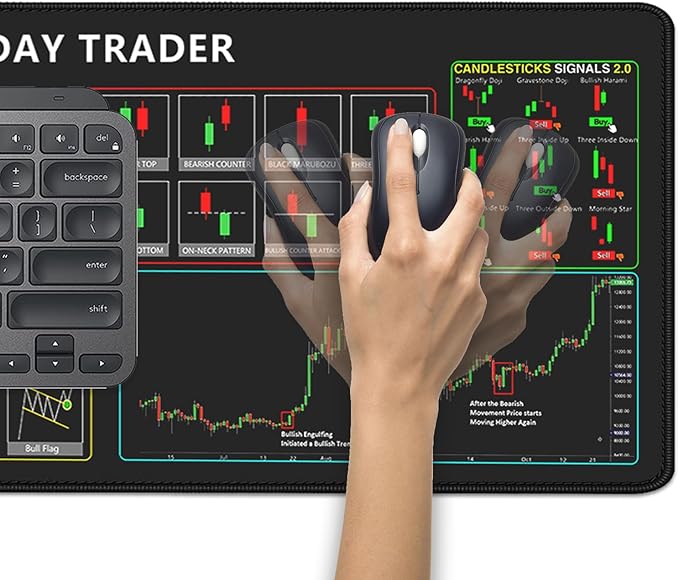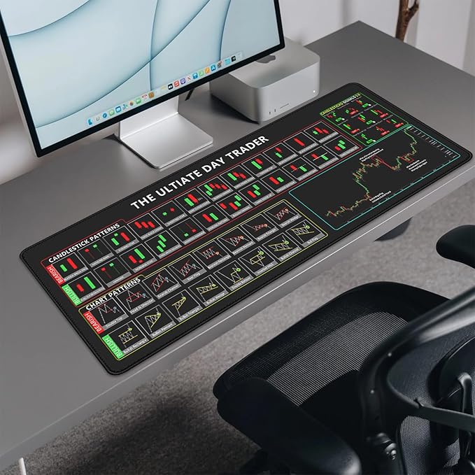 Stock Market Invest Day Trader Trading Mouse Pad Chart Patterns Cheat Sheet,Large Computer Mouse Pad Desk Pad with Stitched Edges Desk Mat Accessories 31.5x11.8 Inch