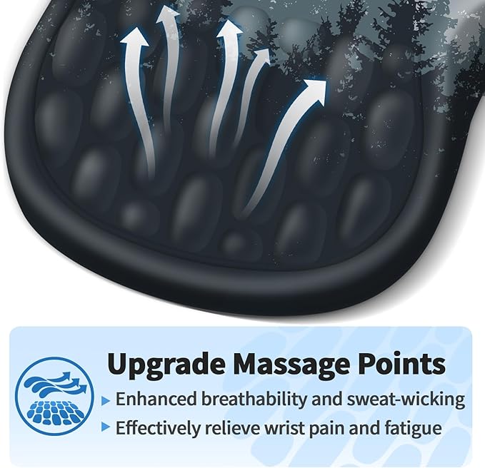 - Ergonomic Mouse Pad: The innovative ergonomic 8-degree slope and massage bump design perfectly support the wrist and palm. Massage bump design can effectively relieve wrist pain and fatigue, improve carpal tunnel syndrome (CTS), strengthen the air circulation between wrist and mouse pad, prevent sweating, and keep your wrist in the most comfortable state.It's your best choice of desk mouse pads.