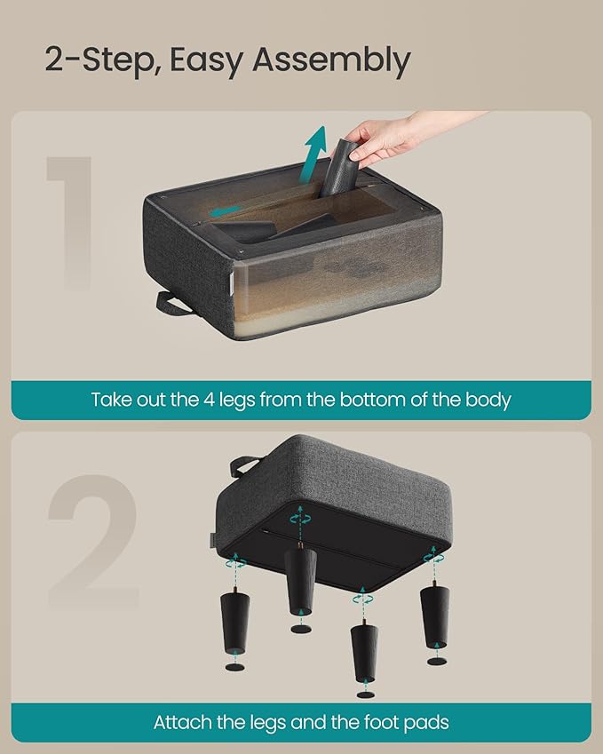 - Fast Assembly & Hidden Space: Simply take the legs out from inside, screw them on, and attach the pads. Keep small essentials neatly tucked away in the hidden compartment