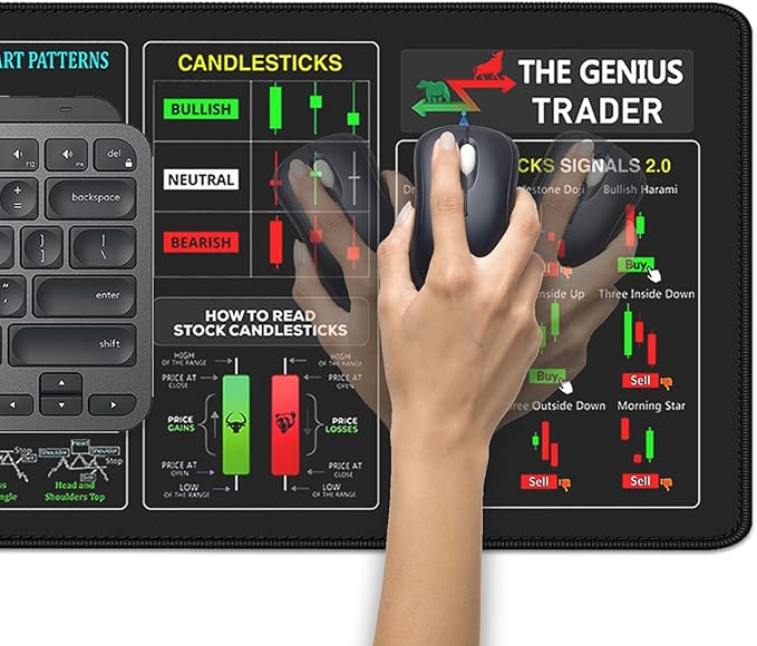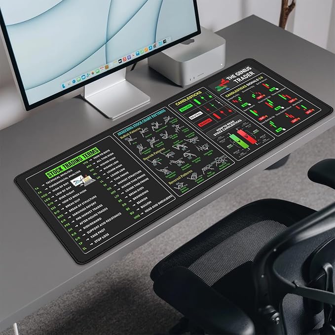 Stock Market Invest Day Trader Trading Mouse Pad Chart Patterns Cheat Sheet,Large Computer Mouse Pad Desk Pad with Stitched Edges Desk Mat Accessories 31.5x11.8 Inch