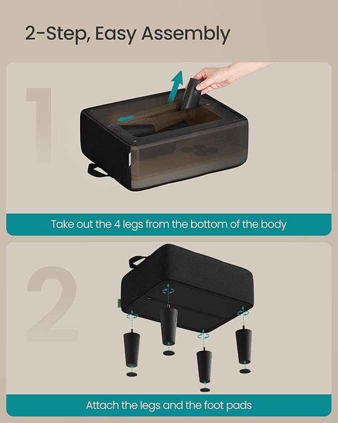 - Fast Assembly & Hidden Space: Simply take the legs out from inside, screw them on, and attach the pads. Keep small essentials neatly tucked away in the hidden compartment