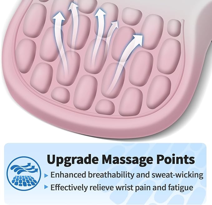 - Ergonomic Mouse Pad: The innovative ergonomic 8-degree slope and massage bump design perfectly support the wrist and palm. Massage bump design can effectively relieve wrist pain and fatigue, improve carpal tunnel syndrome (CTS), strengthen the air circulation between wrist and mouse pad, prevent sweating, and keep your wrist in the most comfortable state.It's your best choice of desk mouse pads.