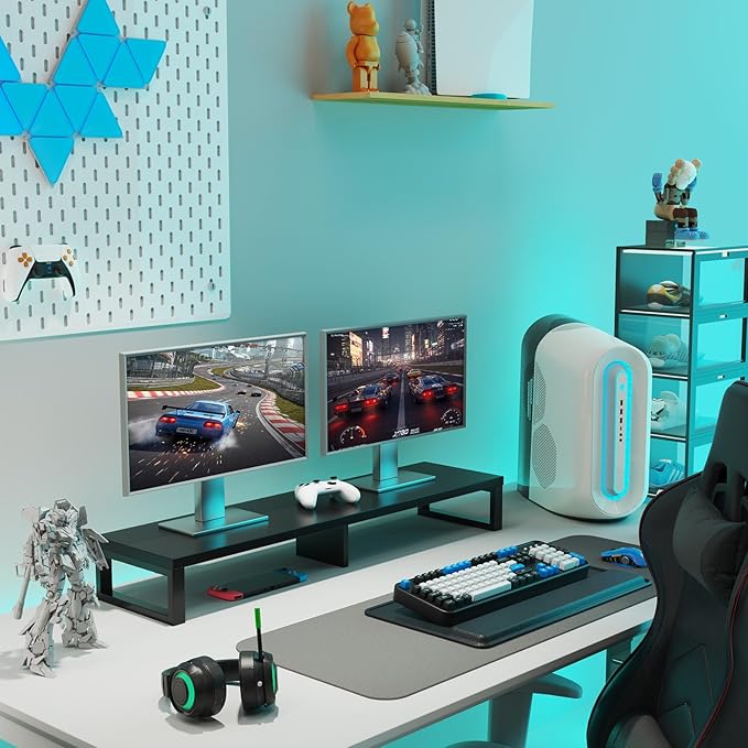 - Monitor Riser with 100lb Capacity: Built with reinforced steel legs and a 39.4" platform, this dual monitor stand doubles as a printer stand, laptop riser, or TV stand. Rock-solid stability meets versatile functionality.