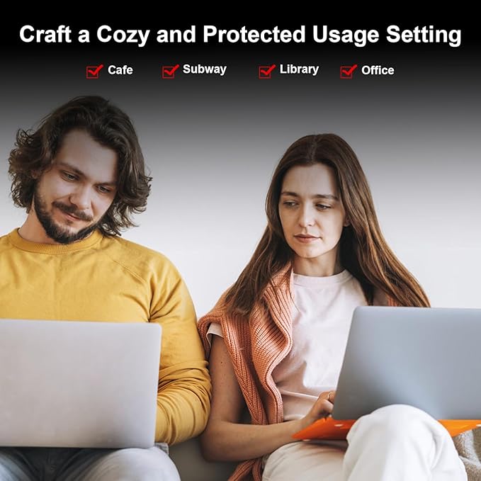 - 【Privacy Effect Tips】Privacy feature appears difference under different screen brightness and user environment. the lower screen brightness, the better privacy, the stronger sunshine light, the better privacy feature too.Tips: the Does not block the view directly behind you, no matter the distance.