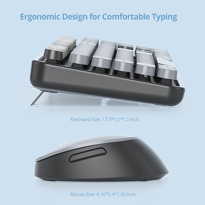 - 【Auto Power-Saving Function】: End Battery Change Hassles Tired of swapping batteries? Our typewriter - style keyboard and mouse set has an auto - sleep mode. It activates after 5 minutes of inactivity, saving 50% more battery life than regular models. A simple key press wakes it up. With 1 AA battery pre - installed in each device, it’s perfect for travel, office, or home use—always ready, no more battery headaches