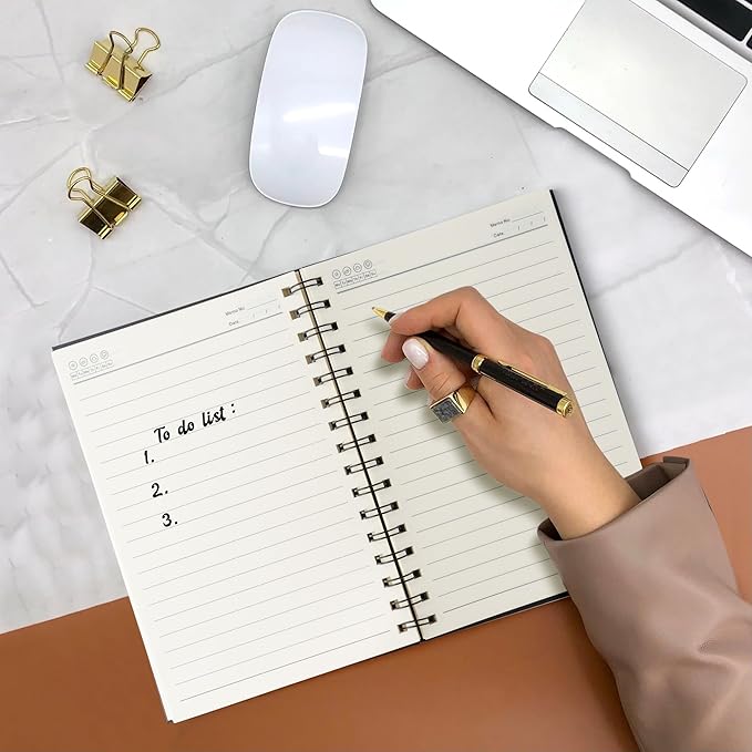 - Spiral Binding & Hard Cover: Built with a sturdy spiral binding, this notebook lays flat and allows for easy page-turning. The 2mm thick black hardcover offers excellent durability, protecting your notes from damage. It folds 360° without creases and allows for easy page removal.