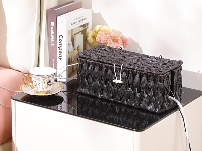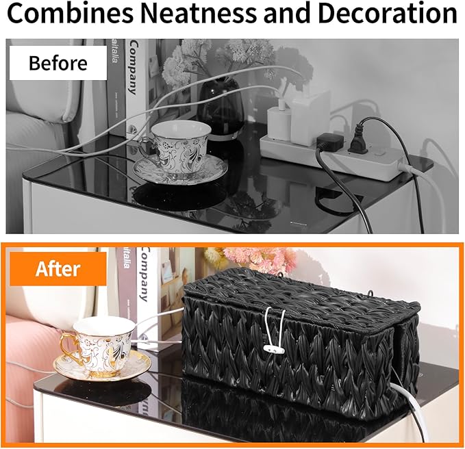 - 【Handcrafted from PE Plastic Materials】: Coeusy cable organizer is hand-woven by skilled craftsmen, using odorless PE plastic, which is sturdy and waterproof, and the rattan decoration is also very attractive. Each cable box frame is reinforced with a sturdy iron frame with a diameter of 3 mm to ensure durability while maintaining a light texture