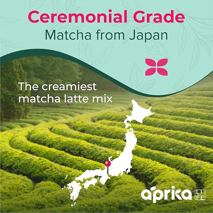 AprikaLife Matcha Latte Powder, Premium Barista Crafted Mix with Natural Vanilla Flavor - Authentically Japanese - 1st Harvest Ceremonial Grade, Sweet Matcha Powder Used by Coffee Shops 6.8 oz / 180g